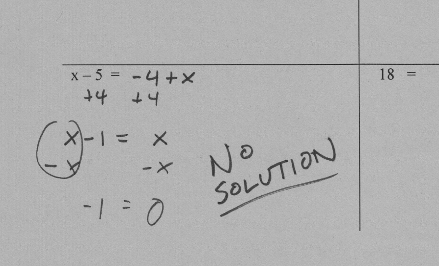 Or it might occur that they construct an equation that is a false statement, or possibly even an identity.
